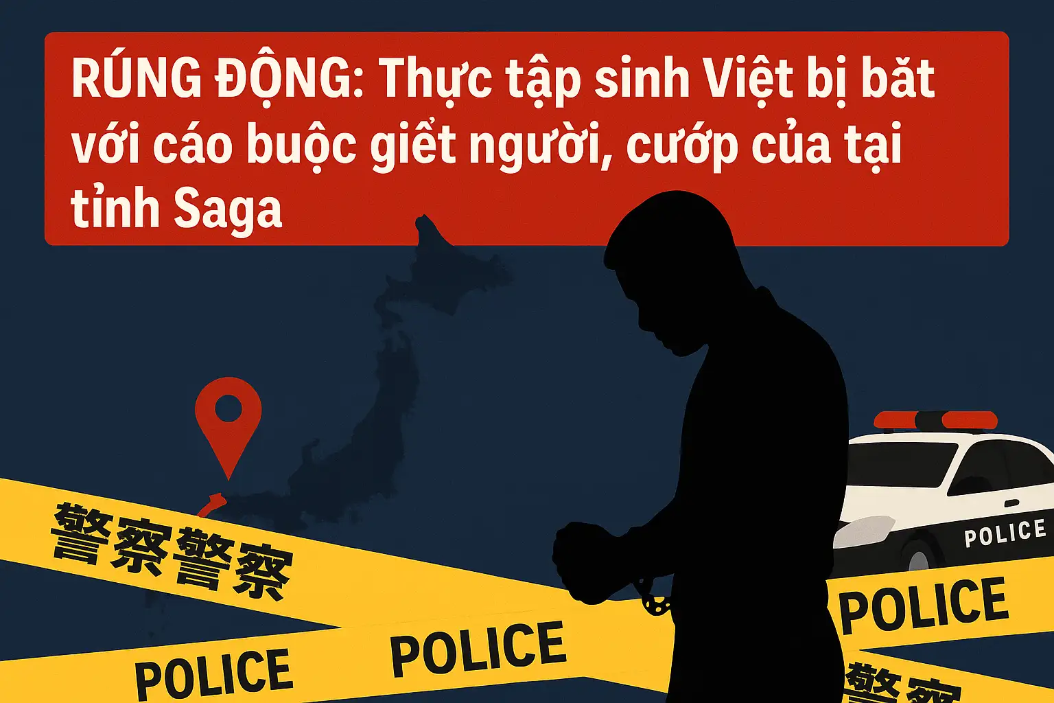 Ngày 28/7/2025 – Cảnh sát tỉnh Saga, Nhật Bản đã bắt giữ một thực tập sinh người Việt Nam với cáo buộc đột nhập, cướp của và sát hại một giáo viên tiếng Nhật, gây chấn động dư luận.
