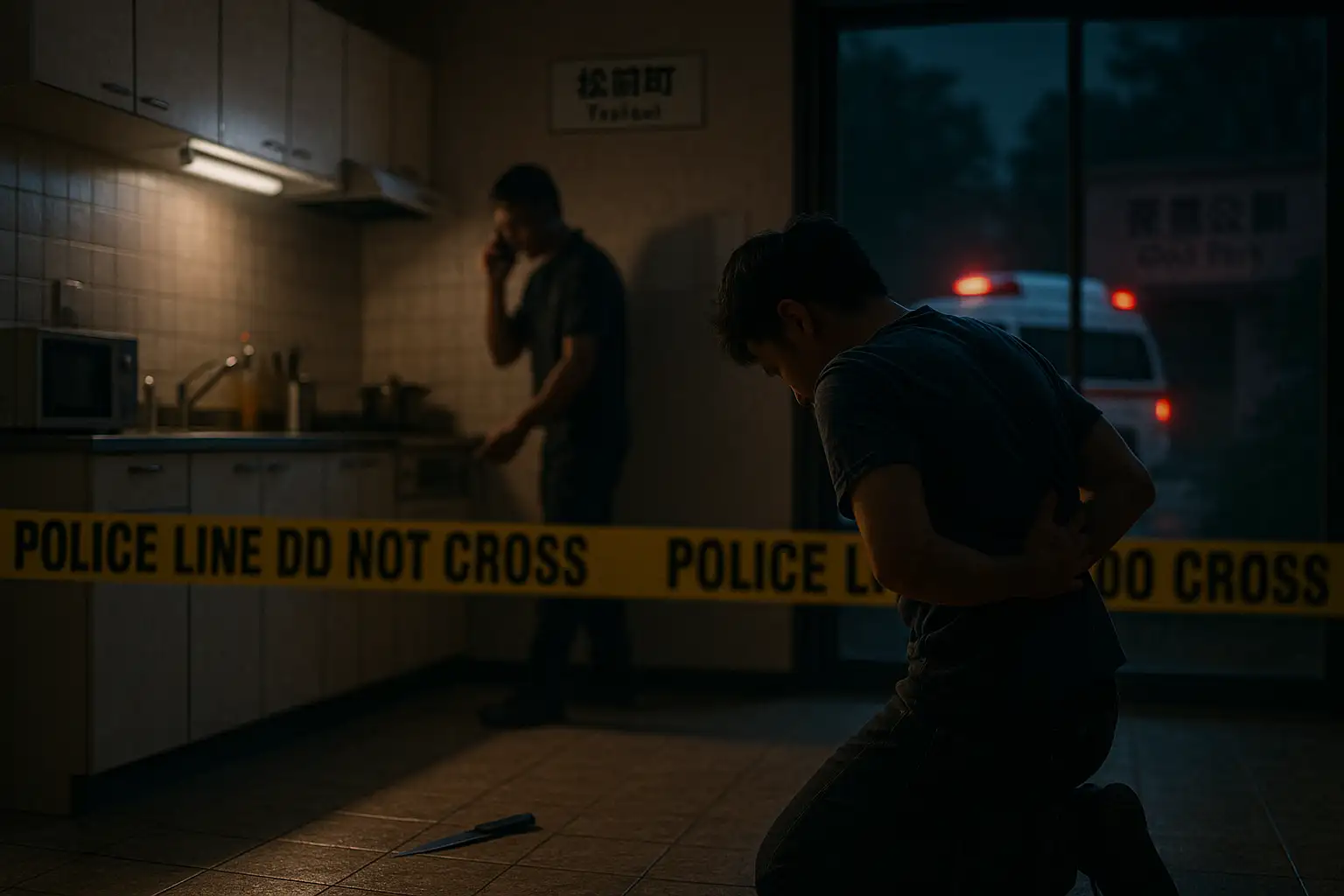 Thời điểm – nơi xảy ra: khoảng 19:30, 24/06/2024, bếp của ký túc xá nhân viên tại khu Tsutsui, Masaki-chō (Ehime); nạn nhân (nam, 35 tuổi) là thực tập sinh kỹ năng. Sau khi bị đâm, nạn nhân chạy đến 義農公園 (Ginō Park); người đi đường gọi cứu hộ/cảnh sát. Tại hiện trường thu được dao nhà bếp. TBS NEWS DIG